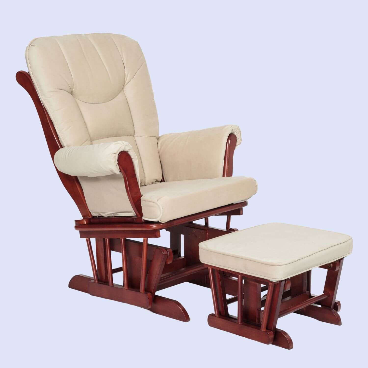 - This nursery seating set includes one Glider Chair and one Ottoman, accompanied by a cozy pillow for added lumbar support