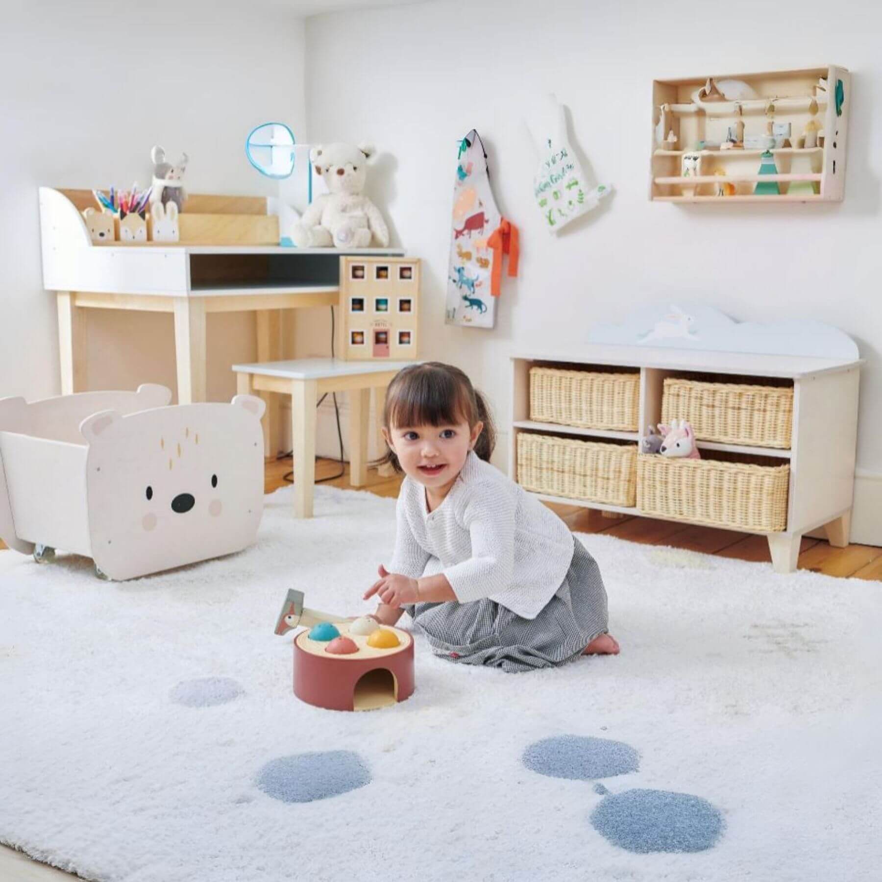 Keep clutter at bay with the Tender Leaf Bunny Storage Unit—a stylish and functional piece that’s perfect for any child’s bedroom or playroom. With four removable wicker baskets and a sturdy design that doubles as a bench, this unit makes cleanup easy and storytime cozy. Finished in calming neutrals with a sweet bunny motif, it blends beautifully with any decor.