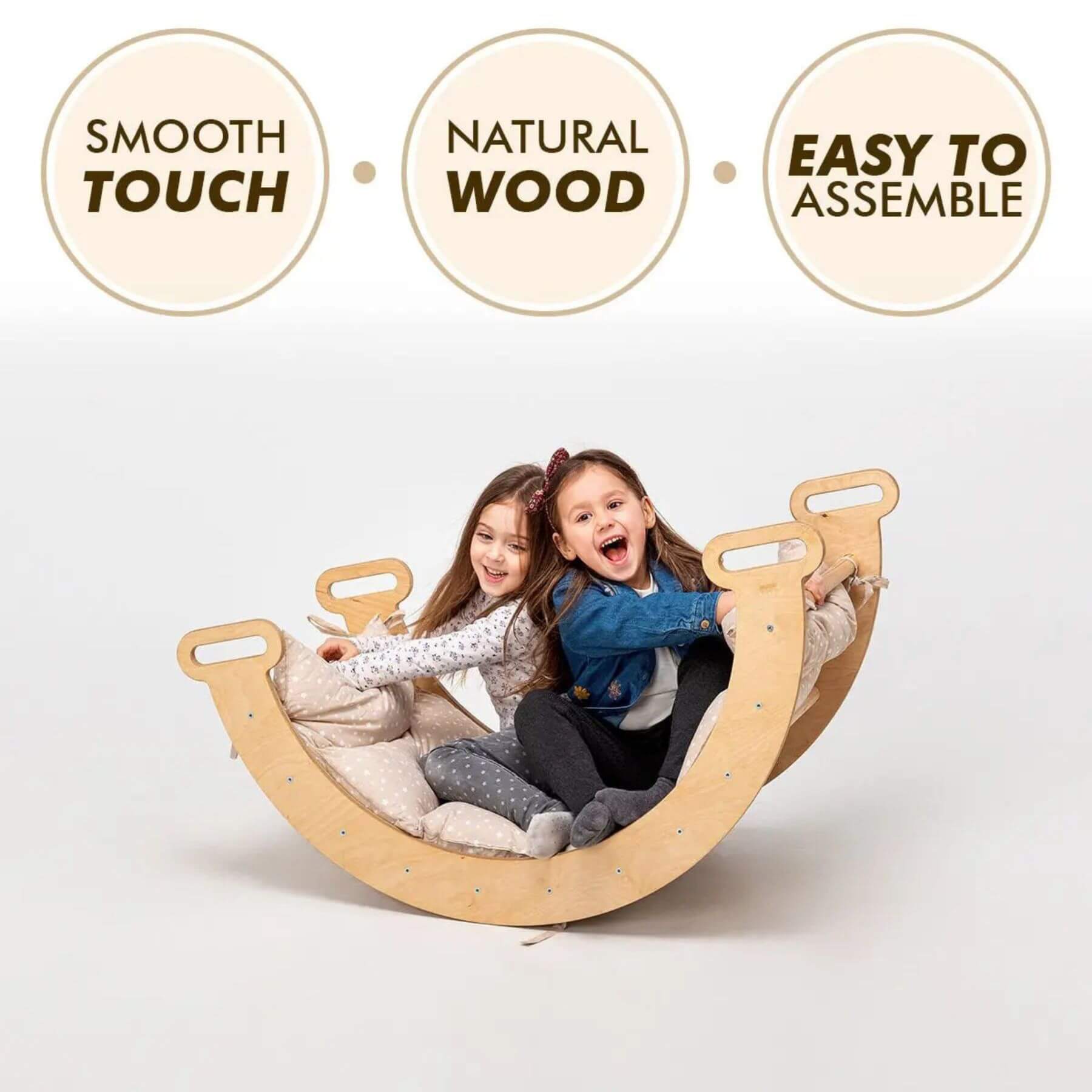 Introduce your child to the Montessori Climbing Arch & Slide/Ramp Set with our specially designed cushion, offering a plush, cloud-like surface for children to relax on as they engage in their cherished rocking activities, thoughtfully designed to promote muscle development, balance control, hand-eye coordination, and self-confidence. Adaptable and space-efficient, this set is ideal for toddlers and young children, ranging from 1 to 6-7 years old.