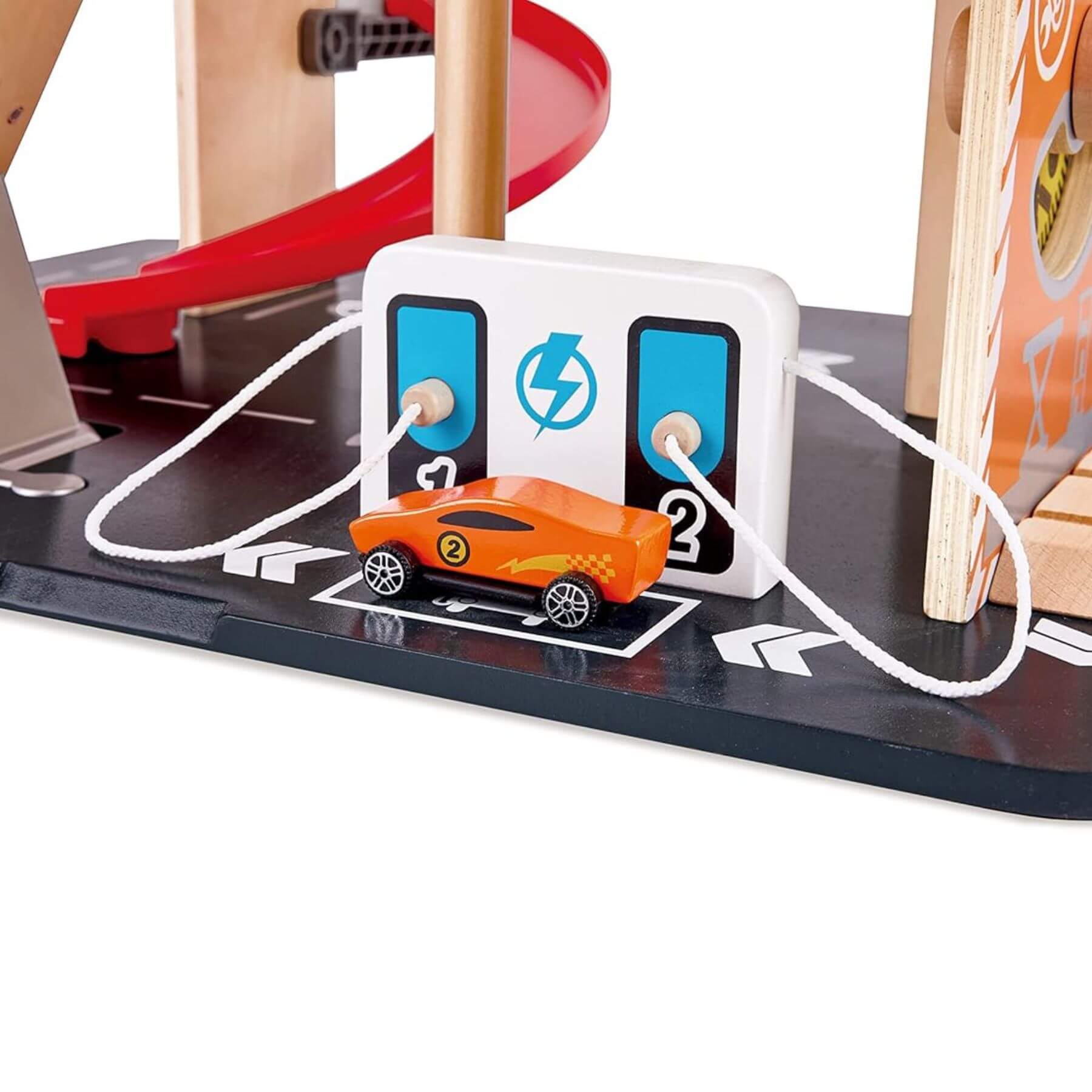 3 Levels of Fun: Includes multiple floors of parking, a ground-floor service station, and two action-packed race tracks
