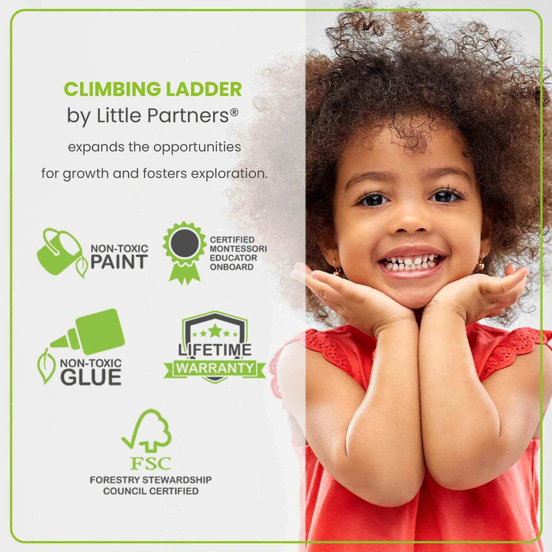 The perfect addition to our Little Partners® Learn 'N Climb Triangle, Learning Tower™ and LTD Edition Learning Tower™. Double the adventure with the Little Partners® Climbing Ladder! Negotiating and placement of your child's body to successfully grip the climbing rungs will help build confidence and strength. Our Climbing Ladder features smooth rungs for easy climbing. Ages 3 and up and up to 150 lbs.