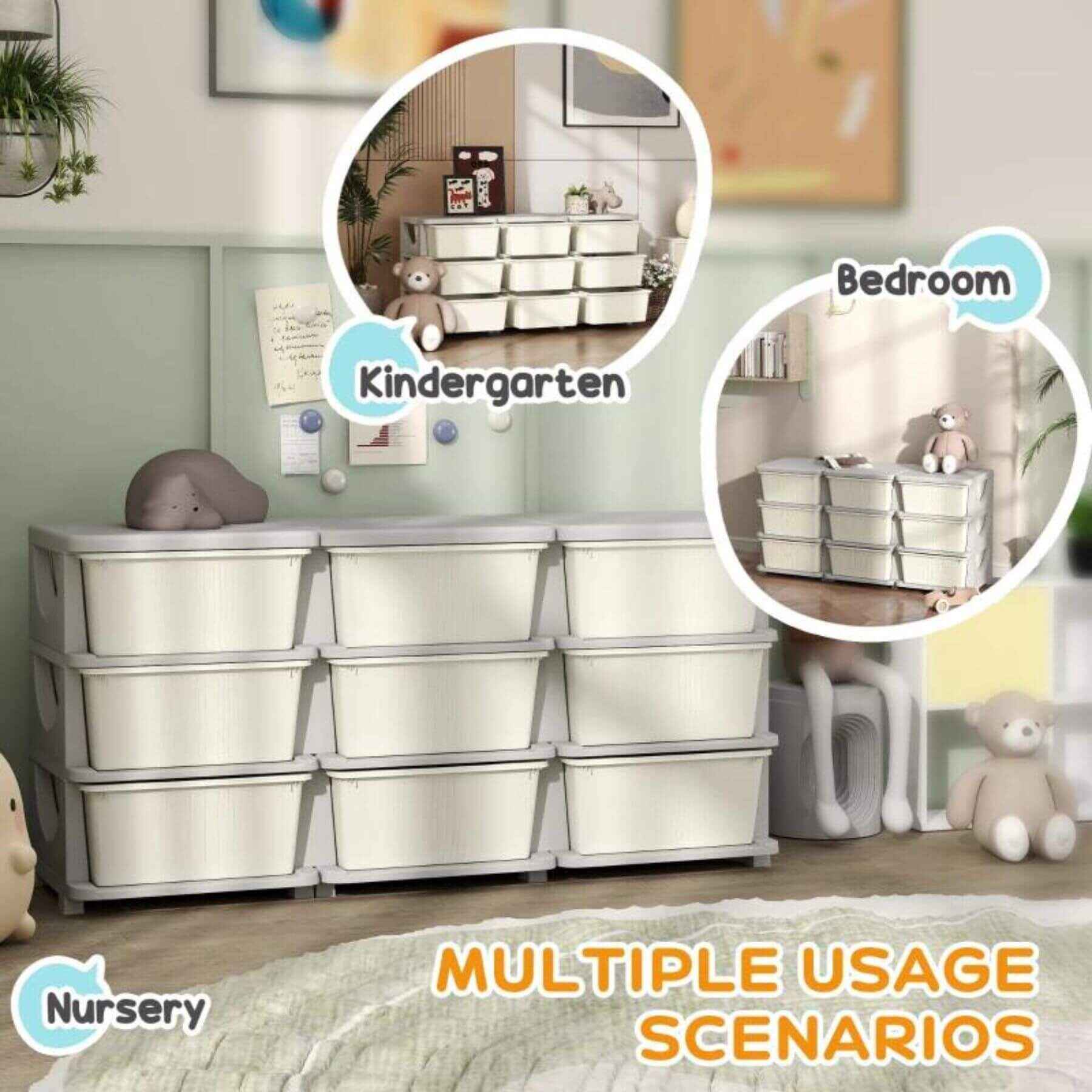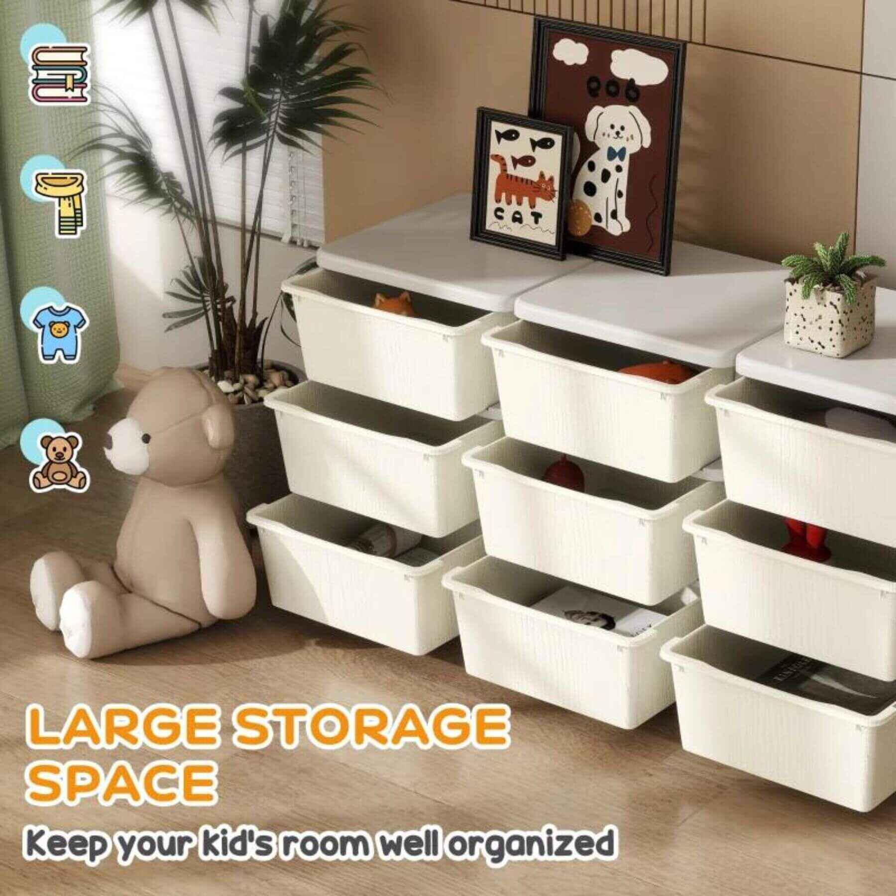 Qaba 29.5" 3 Tier Kids Storage Unit Dresser Tower w/ 9 Drawers