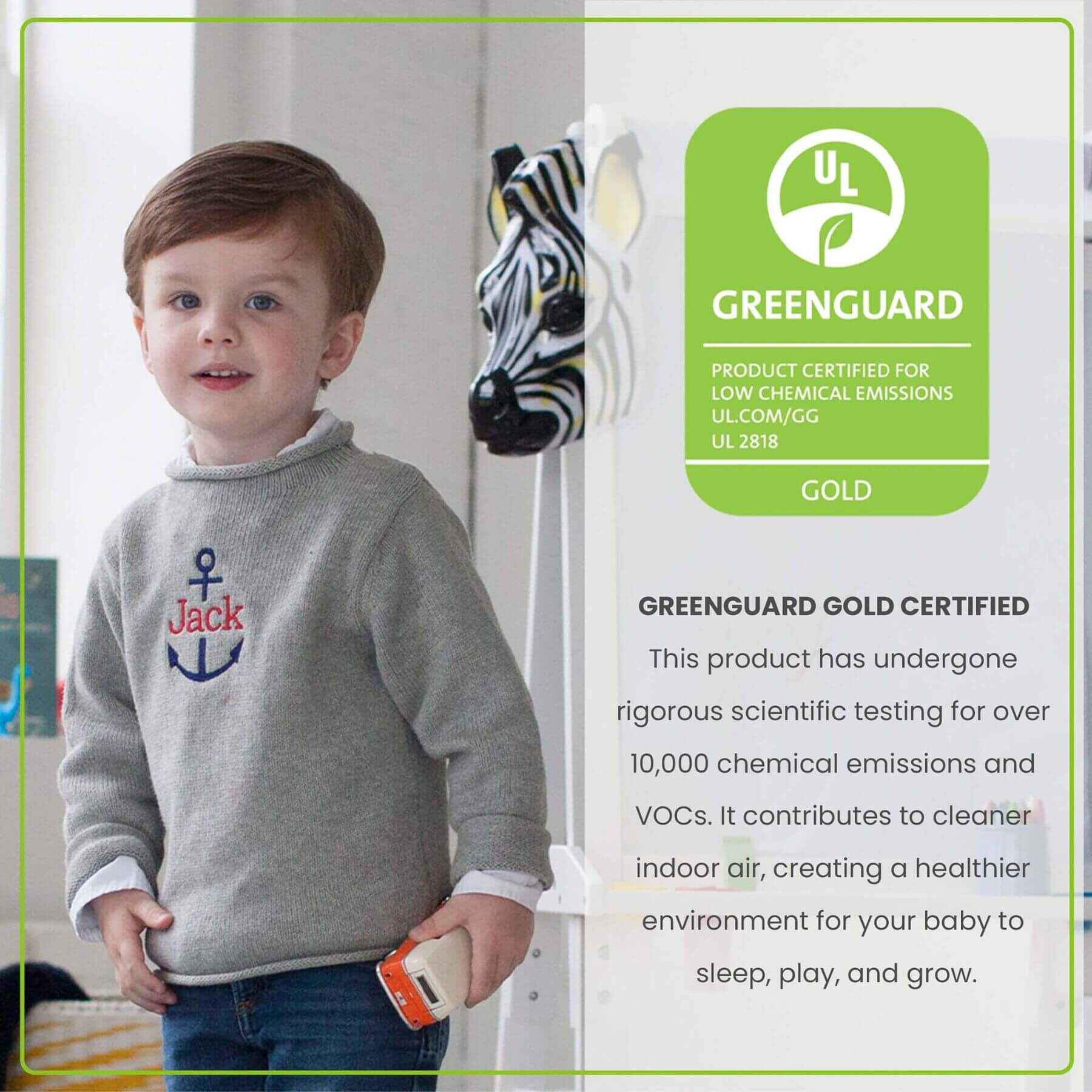 GREENGUARD GOLD CERTIFIED*: This product has undergone rigorous scientific testing for over 10,000 chemical emissions and VOCs. It contributes to cleaner indoor air, creating a healthier environment for your baby to sleep, play, and grow.