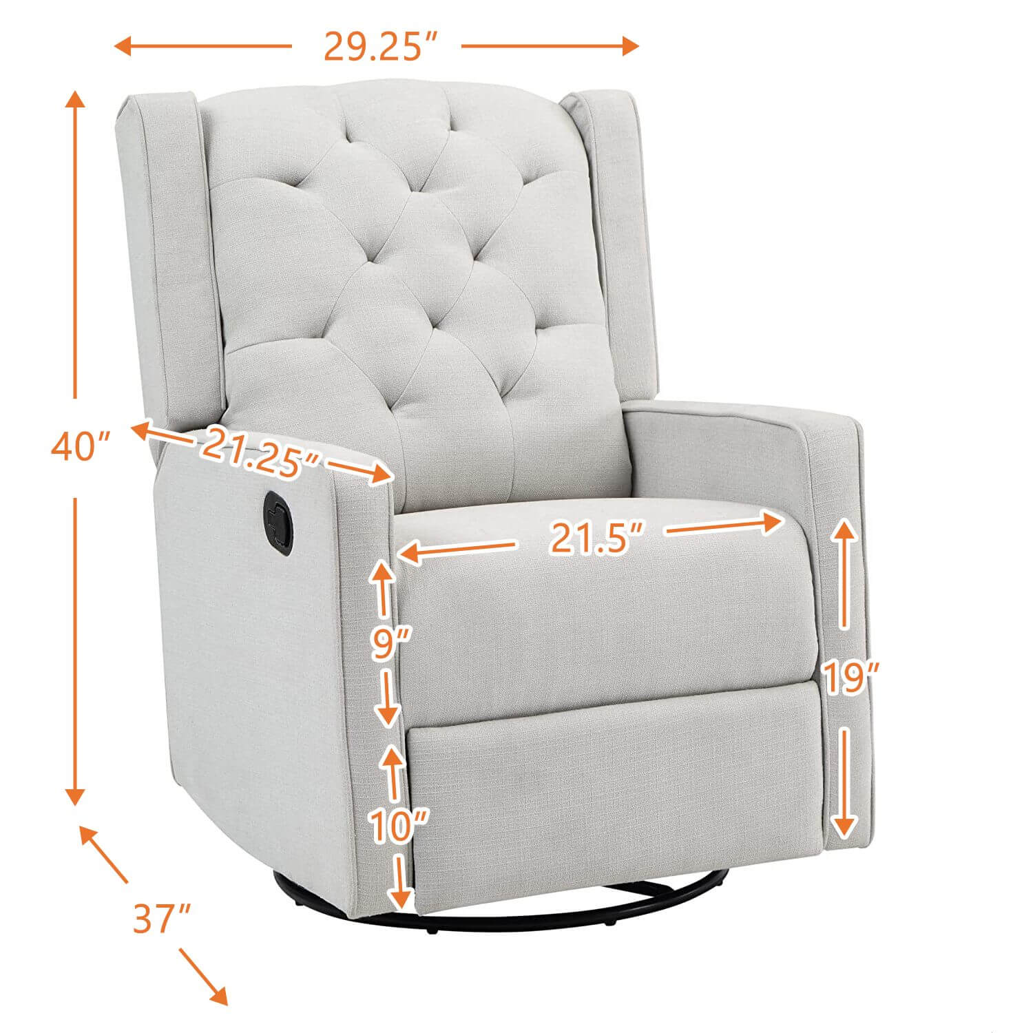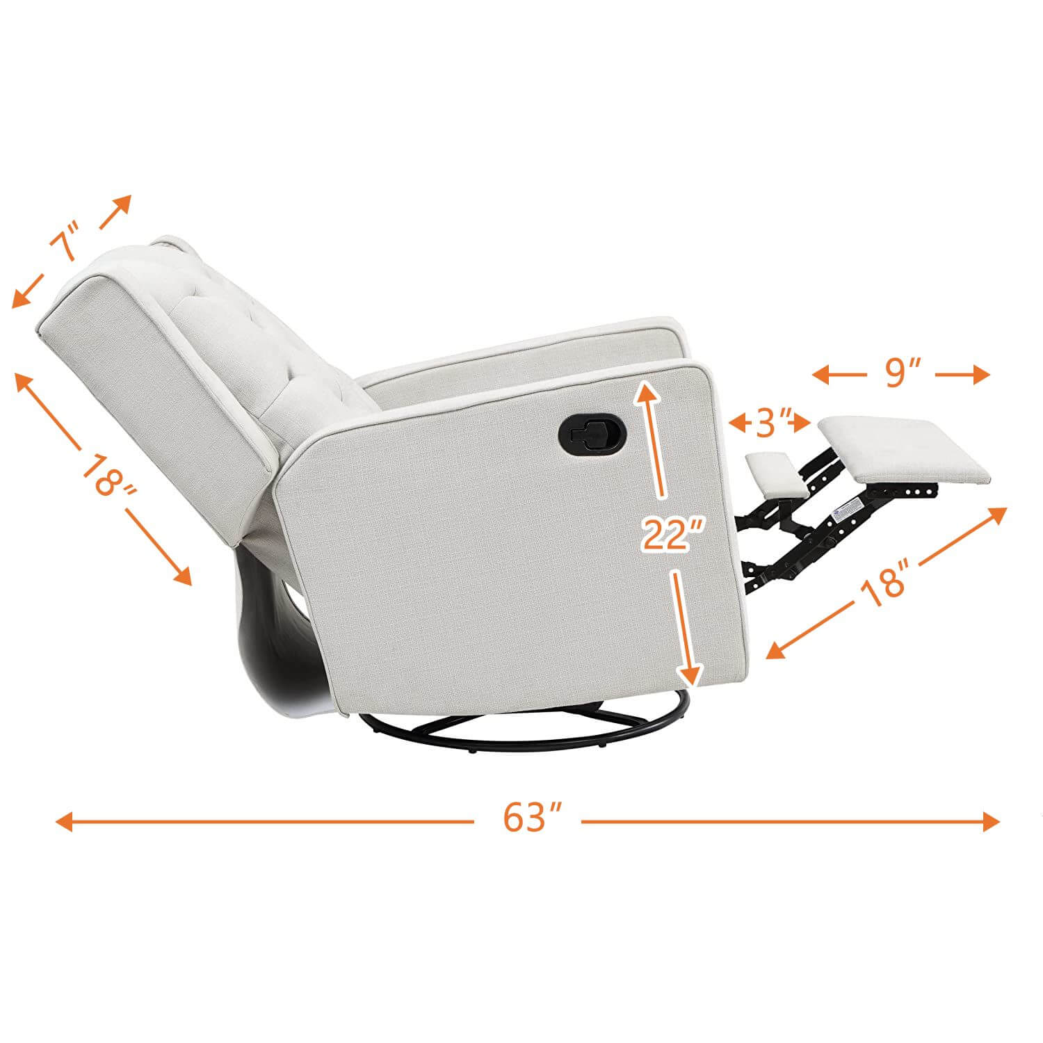 Experience unmatched comfort with the Amber Swivel Glider Recliner, perfect for nurseries, living rooms, or offices. Its generous puffed and cushioned seat, back, and arms, along with super-soft micro-suede fabric upholstery, provide maximum relaxation and support. Enjoy the convenience of the built-in easy-pull recliner mechanism, allowing you to kick up your feet or fully recline the chair back. Crafted with sturdy hardwood, this swivel glider recliner is built to last. The top-quality steel ball bearing glides ensure a smooth and quiet rocking and swivel motion. Treat new parents-to-be to the luxury and comfort of the Amber Swivel Glider Recliner – the perfect gift for those precious moments of relaxation.