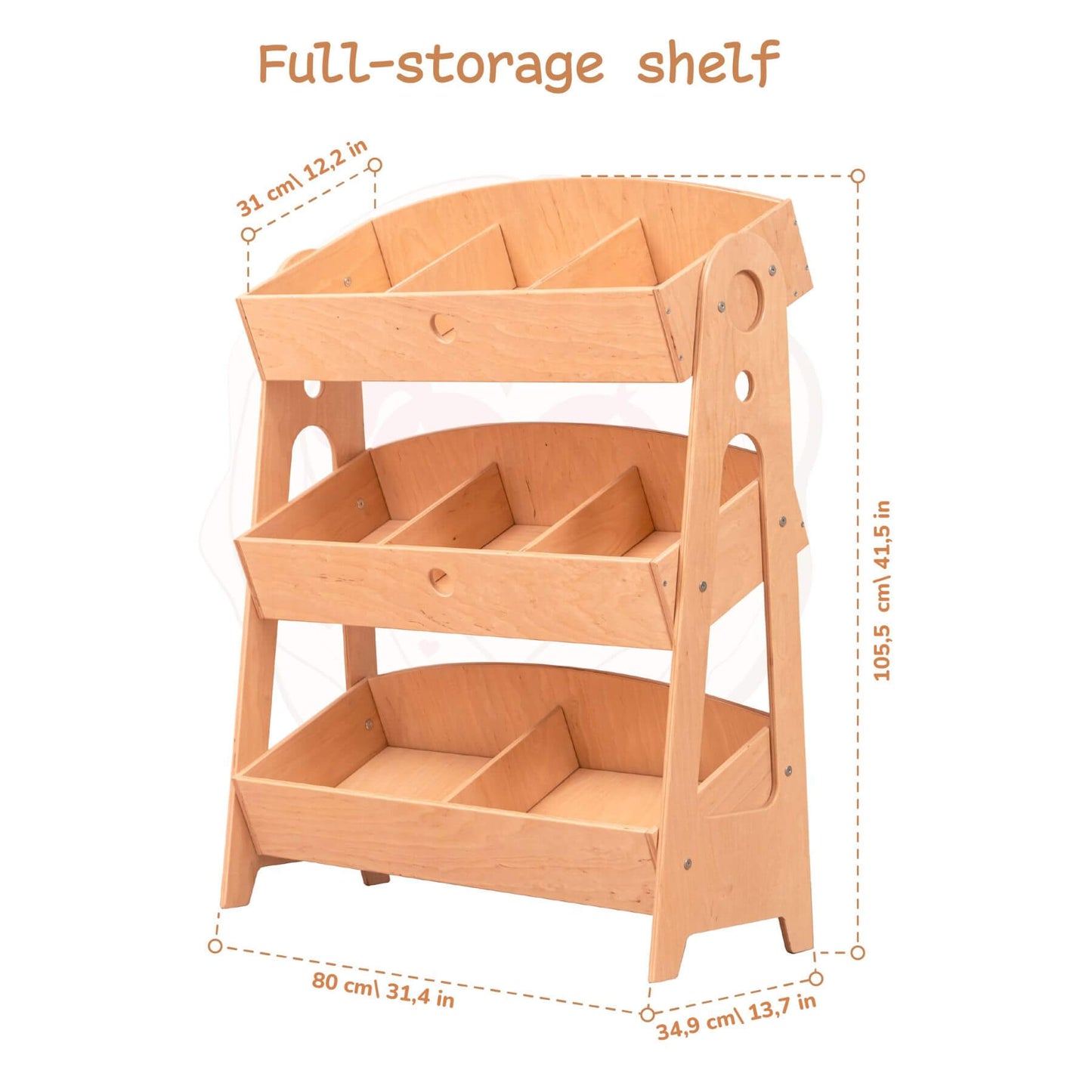 Make cleanup time just as exciting as playtime with the Wood and Hearts Toy Storage Organizer — the perfect tool for teaching children responsibility, independence, and organizational skills. Thoughtfully designed with the Montessori method in mind, this stylish and sturdy organizer empowers kids to manage their own toys and books with ease. Built from safe, durable materials, it’s a beautiful and practical addition to any playroom or bedroom. To your attention: always be vigilant during children's games!!!